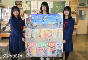 滝川西高美術部、旧スマイルビル仮囲いを彩る原画を制作