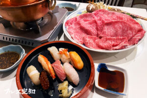 滝川「鮨の東龍」 創業75周年でお得なセット料理 和牛しゃぶしゃぶと寿司