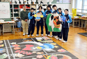 美唄中の美術部が新年を祝うウエルカムアート制作 16日まで市役所に展示