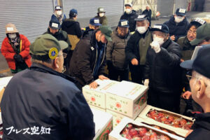 威勢のいい声響く 岩見沢の卸売市場で初競り