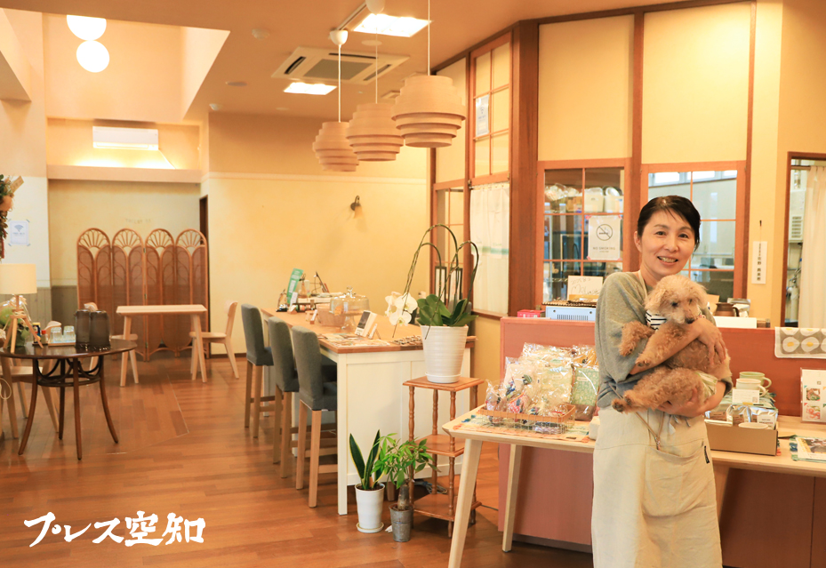 【芦別】元地域おこし協力隊の佐野貴美恵さんが7月にオープンしたカフェ「Moi Hub&Cafe」=北5条西1丁目1の1、元お菓子のほんだ芦別店=が人気を集めている。佐野さんは「Hubの名前には人と人のつながりになることができればという思いを込めました。市民はもちろん、移住者や旅行者が交流できるような場所を目指したい」と話している。(写真1=店長の佐野さんと店長犬のキャラメル、写真2=看板メニュー「モポリタン」)
