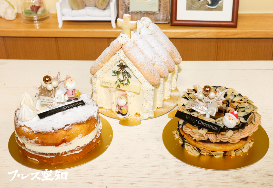 【滝川】おかだ菓子舗はこのほど、今年のクリスマスケーキのラインナップを一新し、1日から予約を受け付けている。教会をイメージした立体型のケーキ「クリスマスチャーチ」(5千円)を始め、定番から限定の計7品を用意している。12月10日までの予約で早期割引も行っており、同店は早めの予約を呼びかけている。(写真=7品のクリスマスケーキを用意した「おかだ菓子舗」)