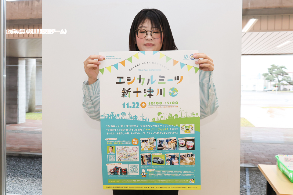 【新十津川】環境イベント「エシカルミーツ新十津川」が22日午前10時から、改善センターみらいえとみらいえ前広場、ゆめりあの3会場で開かれる。「お絵かきお天気キャスター」として、昨年9月までHTBの朝の情報番組「イチモニ!」に出演していた気象予報士の清水秀一さんの講演会や有機米すくい取りの抽選券が当たるオープニングもちまきなど、さまざまな体験や飲食などが楽しめる。(写真=来場を呼びかけるポスター)