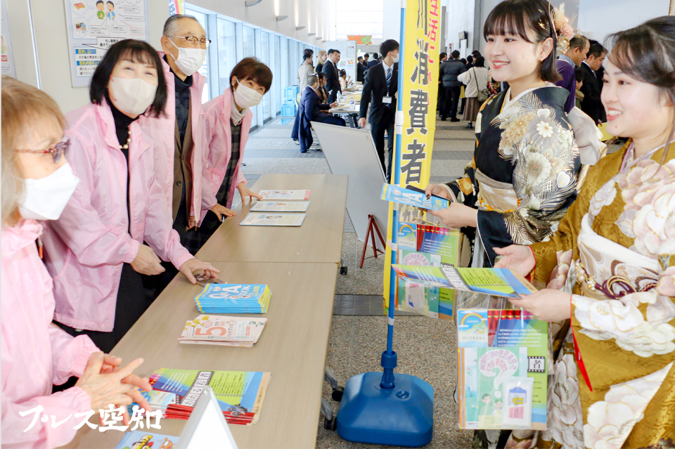 【滝川】2025年の滝川警察署管内における特殊詐欺とSNS型投資・ロマンス詐欺の被害が36件約1億5千万円に達した。道内でも前年を上回る被害が発生しており、滝川署は「ネットで知り合った人からお金の話が出たら詐欺を疑って」と話し、警察や身近な人への相談を呼びかけている。また砂川消費者協会(茅野輝美会長)は11日、「砂川市はたちの集い」で投資詐欺や通販トラブルなどに注意を呼びかける啓発活動を実施した。(写真=「はたちの集い」で啓発活動を行った砂川消費者協会)