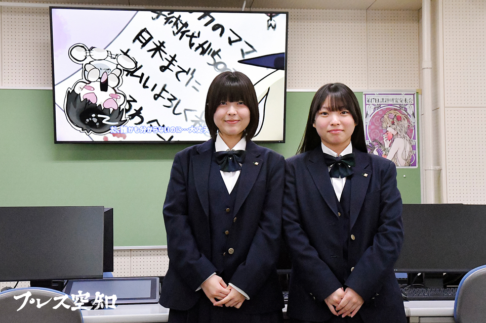 【岩見沢】岩見沢緑陵高2年の菅原そわ香さんと宮下朝陽さんが、特殊詐欺の被害防止に向けたアニメーション動画を制作した。岩見沢警察署、岩見沢地区防犯協会からの要請に応えて制作したもので、市役所本庁舎や市立総合病院、家電量販店のデジタルサイネージ(電子看板)などで公開中。2人は「詐欺の手口を知る機会にもつながった。多くの人に見てもらい、被害の抑止につながれば」と話している。(写真=詐欺防止のアニメ動画を制作した菅原さん(左)と宮下さん)