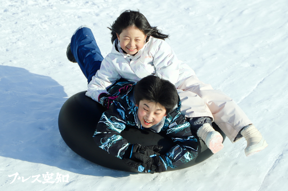 【上砂川】「上砂川冬まつり」(高橋成和実行委員長)が2月7午前11時から、産業活性化センターと周辺広場で開かれる。熱気球の係留飛行を目玉に、スノーモービルや雪の滑り台、UFOキャッチャーゲームなど盛りだくさんの企画が用意されている。参加無料。(写真=チューブ滑りに歓声をあげる子どもたち…昨年の様子)